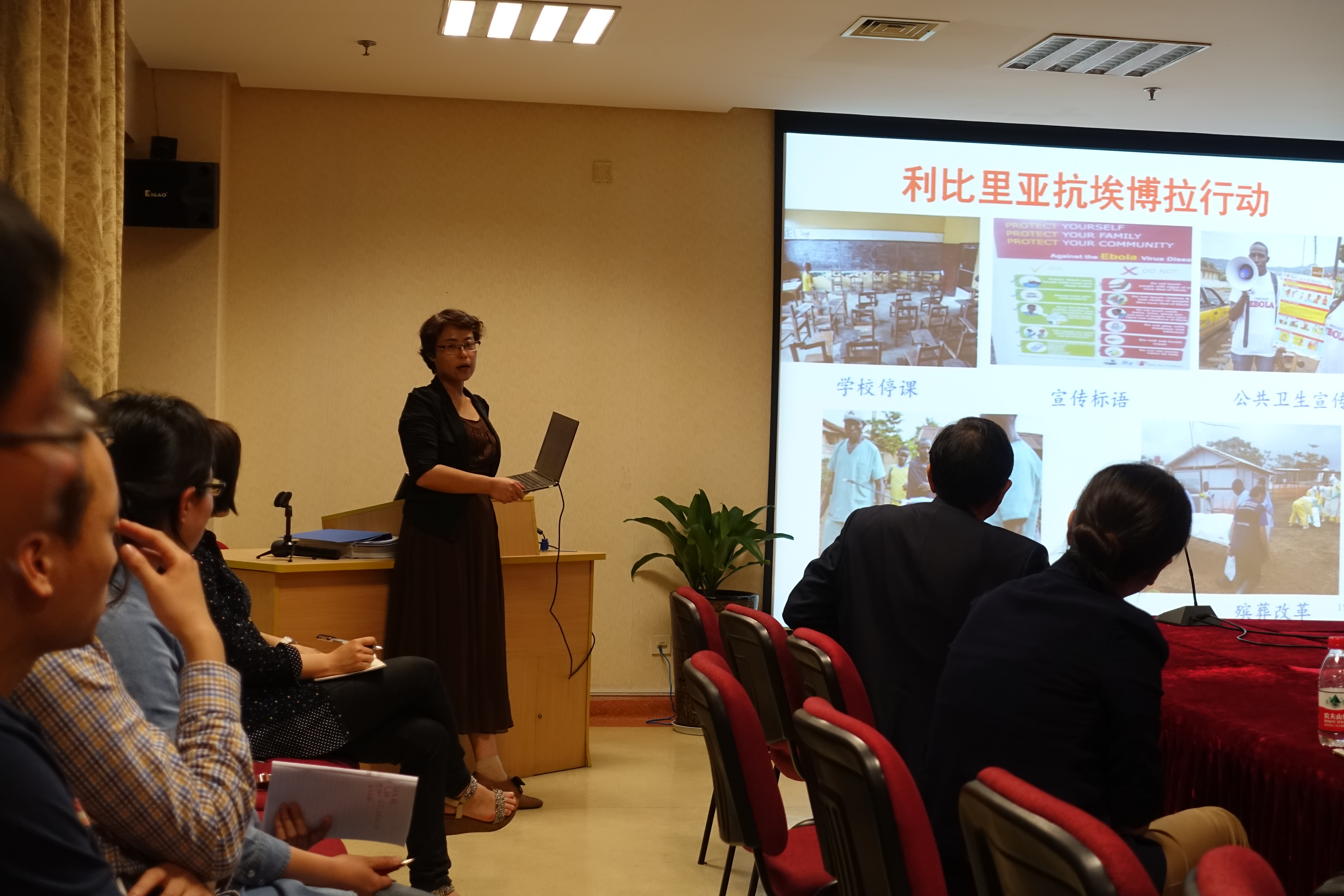 医院感染管理部主任汤灵玲担任此次援利任务感染防控督导组组长,为我们全面讲解了他们在援利期间感染防控管理。汤主任说:“感控管理必须十分细致严密,从源头上杜绝感染是所有传染病防治的重中之重,在工作中,不允许任何人犯‘个人英雄主义’单独行动,一定是两人以上相互配合、监督”,而医疗队先进的信息化视频监控体系也受到了其他援利国家医务人员的关注,正是他们这样严谨的感控管理和督导体系,才最终实现了其他国家难以实现的“零感染”目标。此外,汤主任铺陈出从出征前至出征后的客观真相,强调了部队以及党中央对于医疗队伍的信任和重视。“防控的重要性在实战中得以体现,党的信任,国家的信任是我们爱国的最大动力。” 在前线,她们零距离接触埃博拉患者,积极诊治埃博拉患者,传授传染病防治知识和避免交叉感染的经验,为危重病人的成功救治做出了自己的贡献。