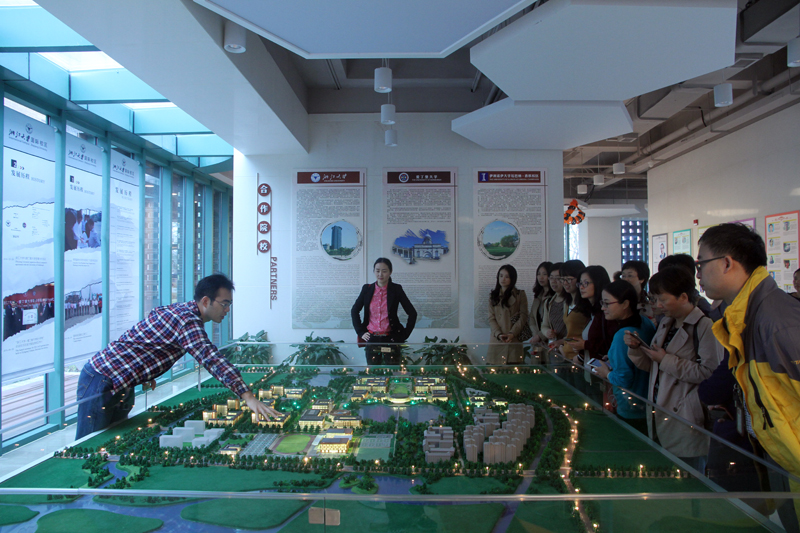 浙江大学国际联合学院于2013年2月启动筹建,占地1200亩,总建筑面积约40万平方米。经过3年多的建设,于2016年9月正式开学。目前有50多位中外学生在此学习。