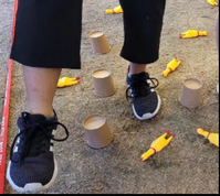 每组分别推选排雷兵和指挥员,排雷兵在蒙眼的情况下听指挥员的指挥通过雷区到达目的点位。