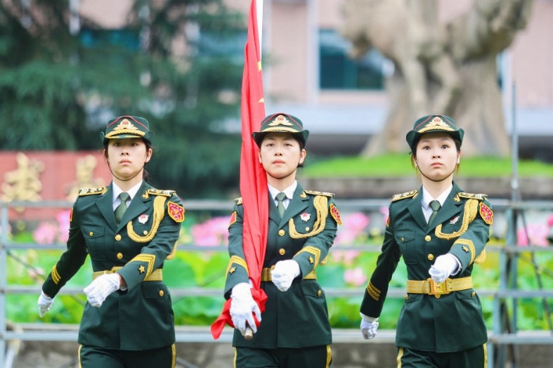 陈周闻在致辞中指出,隆重举行此次升旗仪式,既是为送别一届毕业学子,更是为鼓舞广大同学们接续砥砺前行。她对同学们提出三点期望:作为新时代的先锋和骨干力量,希望同学们厚植家国情怀,为实现民族复兴积极贡献;秉承科学家精神,于医疗卫生领域不懈深耕;牢记医者誓言,将守护人民生命健康铭记于心。以高远使命升华青春梦想,以医者仁心服务祖国人民,锻造向下扎根、向上登攀的过硬本领,以无悔青春报效家国,书写不负祖国、不负人民的时代答卷。